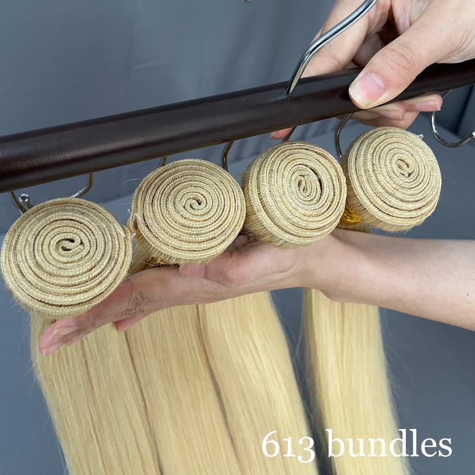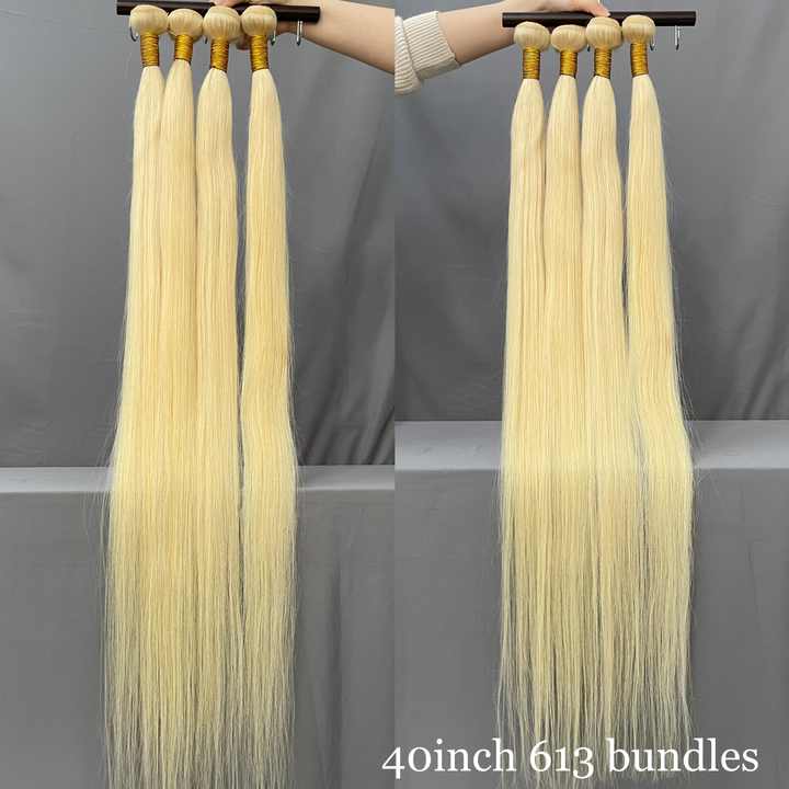 Lot de mèches de cheveux humains brésiliens blonds raides de 40 pouces avec frontal en dentelle, qualité 11A, cheveux vierges bruts 613, vente en gros