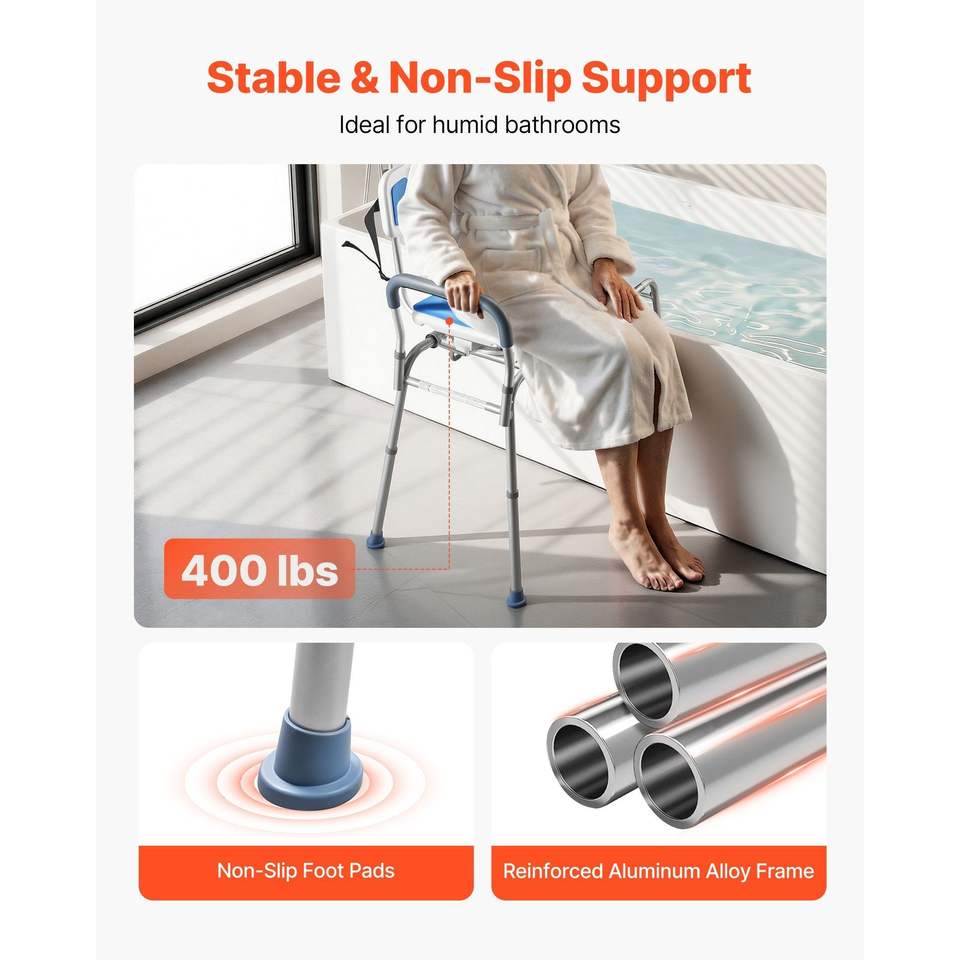 Chaise de douche coulissante 400 lb avec siège pivotant, banc de transfert rembourré pour baignoire, équipement de sécurité pour salle de bain avec dossier réglable en hauteur