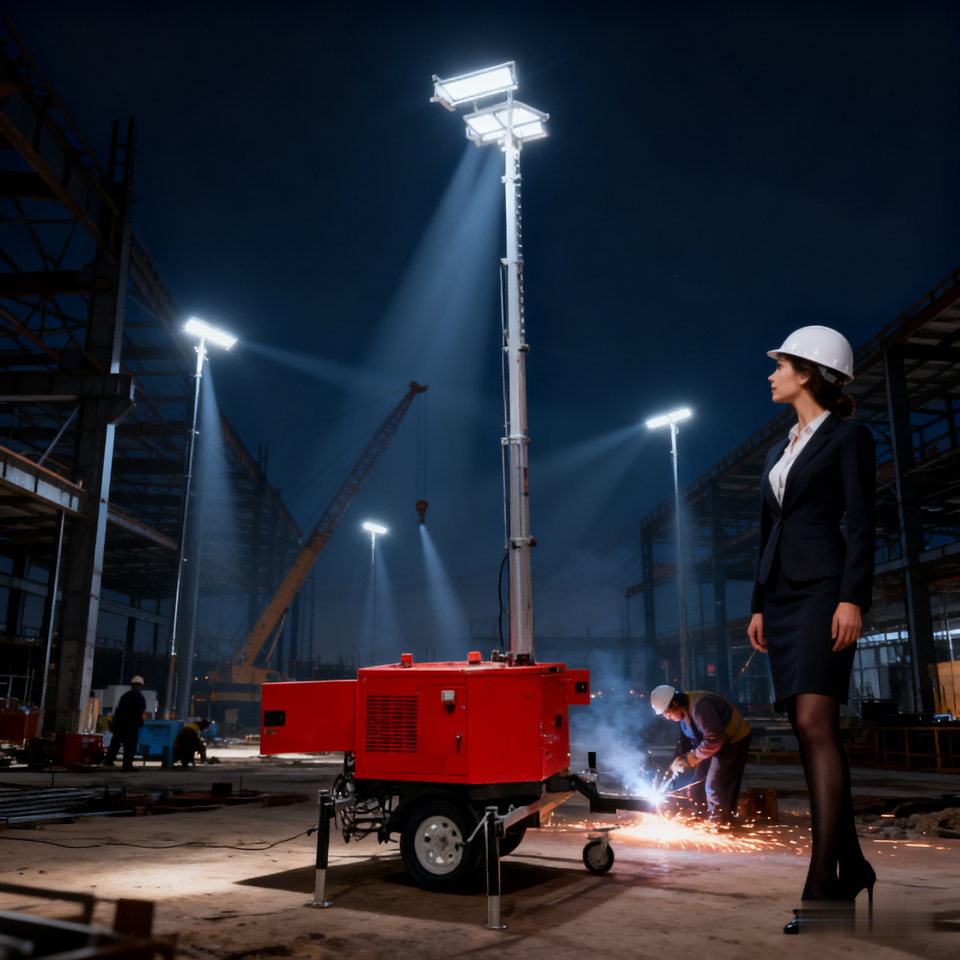 4000 Metal Halide Lamps Light Tower Trailer Mounted Hydraulic Mast Mobile Lighting Tower