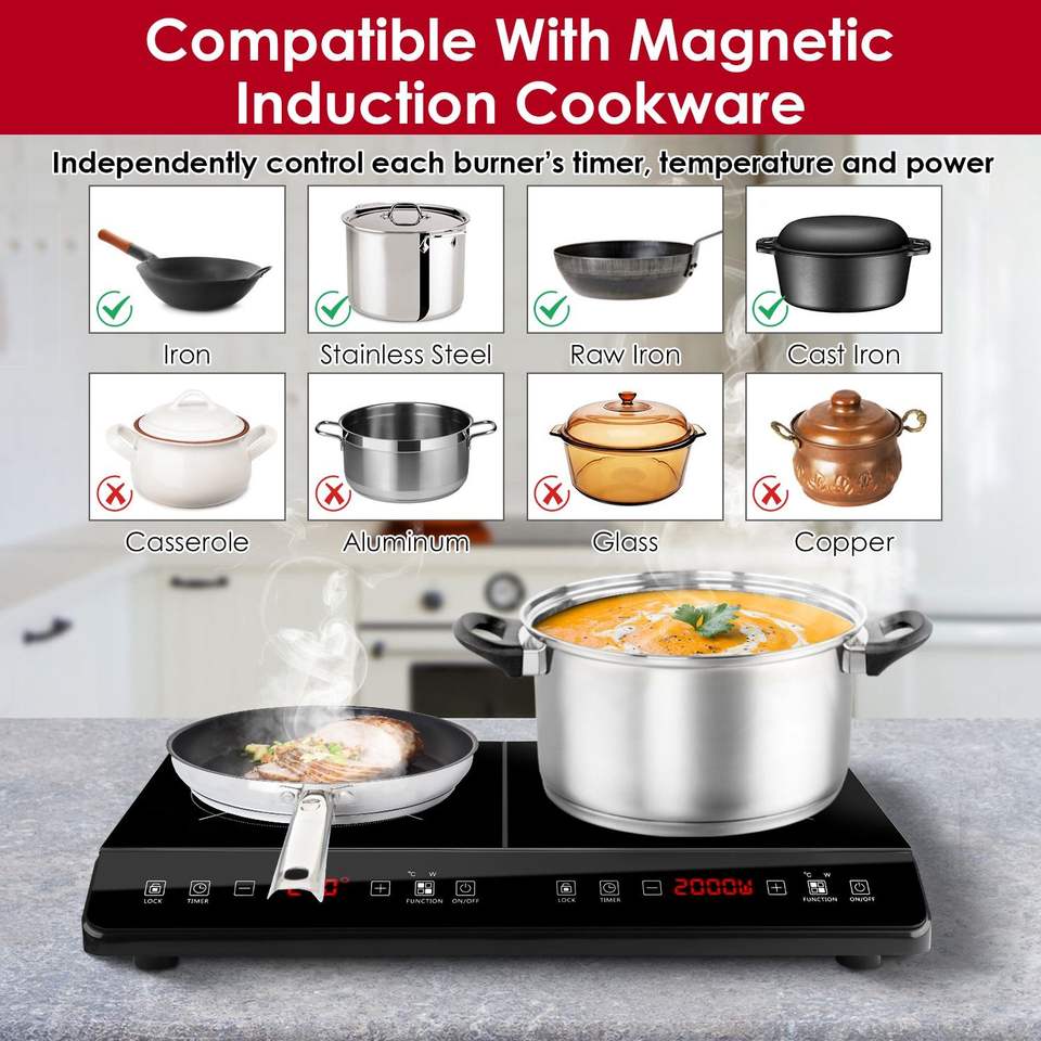 Table de cuisson à induction double portable 4000W, plaque chauffante électrique à double brûleur avec 9 niveaux de puissance et 9 températures