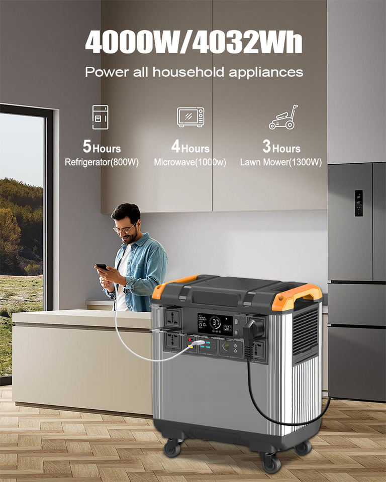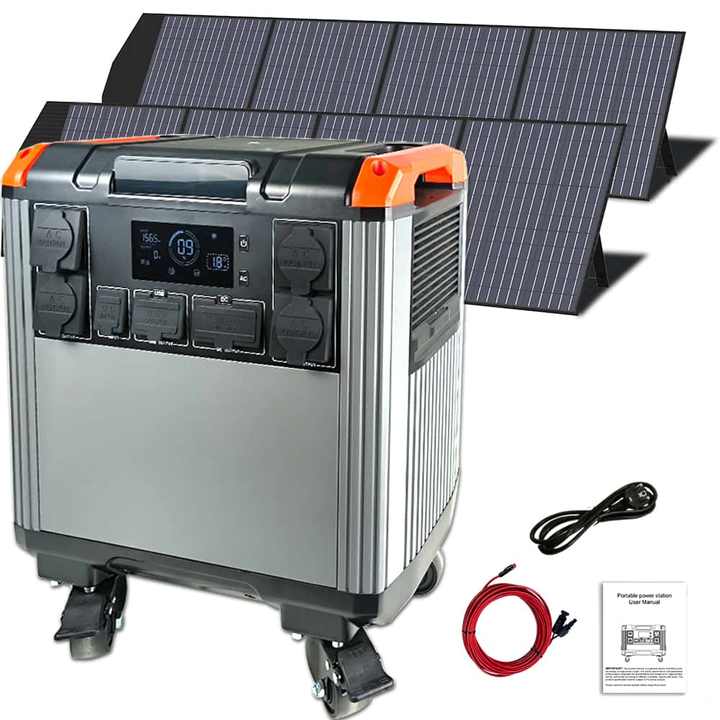 Générateur solaire portable 4000W, station d'alimentation LiFePO4 pour la maison, le camping-car et les activités de plein air