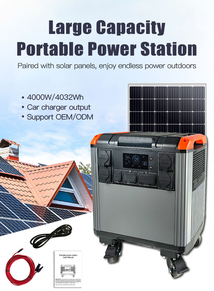 Générateur d'énergie solaire portable 4000W, station d'alimentation LiFePO4 avec panneaux solaires 800W pour la maison, le camping-car et le camping