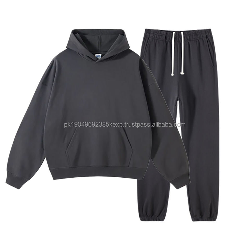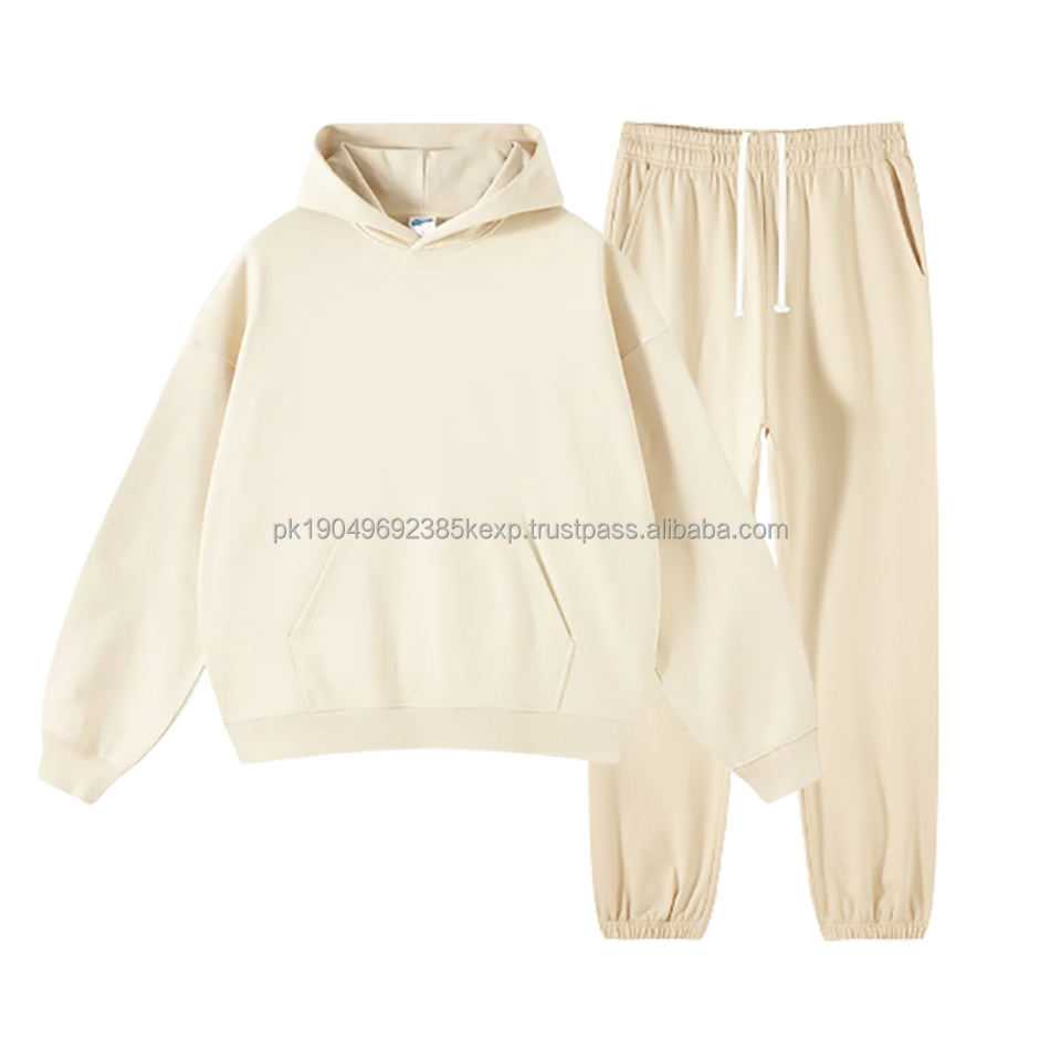 400GSM Wholesale Sweatsuit Men's French Terry Plain Sweat Suits Sweat Pants And Hoodies Unisex Custom % Cotton Tracksuit Sets