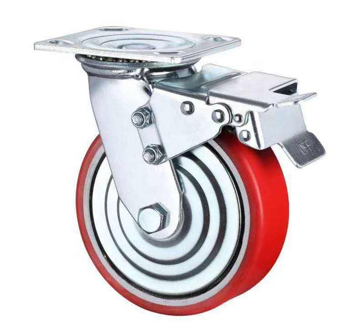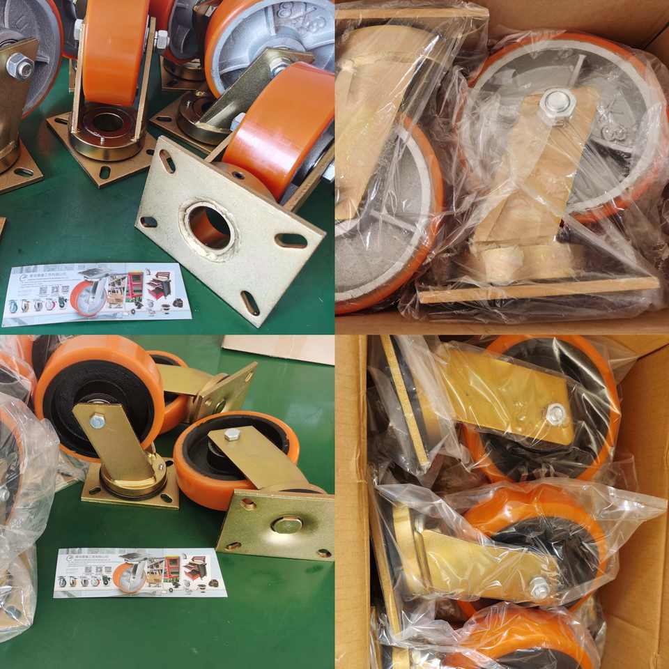 Nom du produit:Roulettes pivotantes robustes en fonte PU avec frein pour chariot