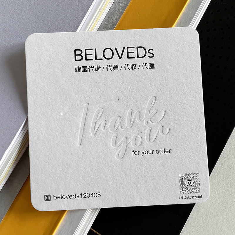 Carte en coton 400gsm papier fait à la main carte de vœux logo en relief personnalisé pour mariage