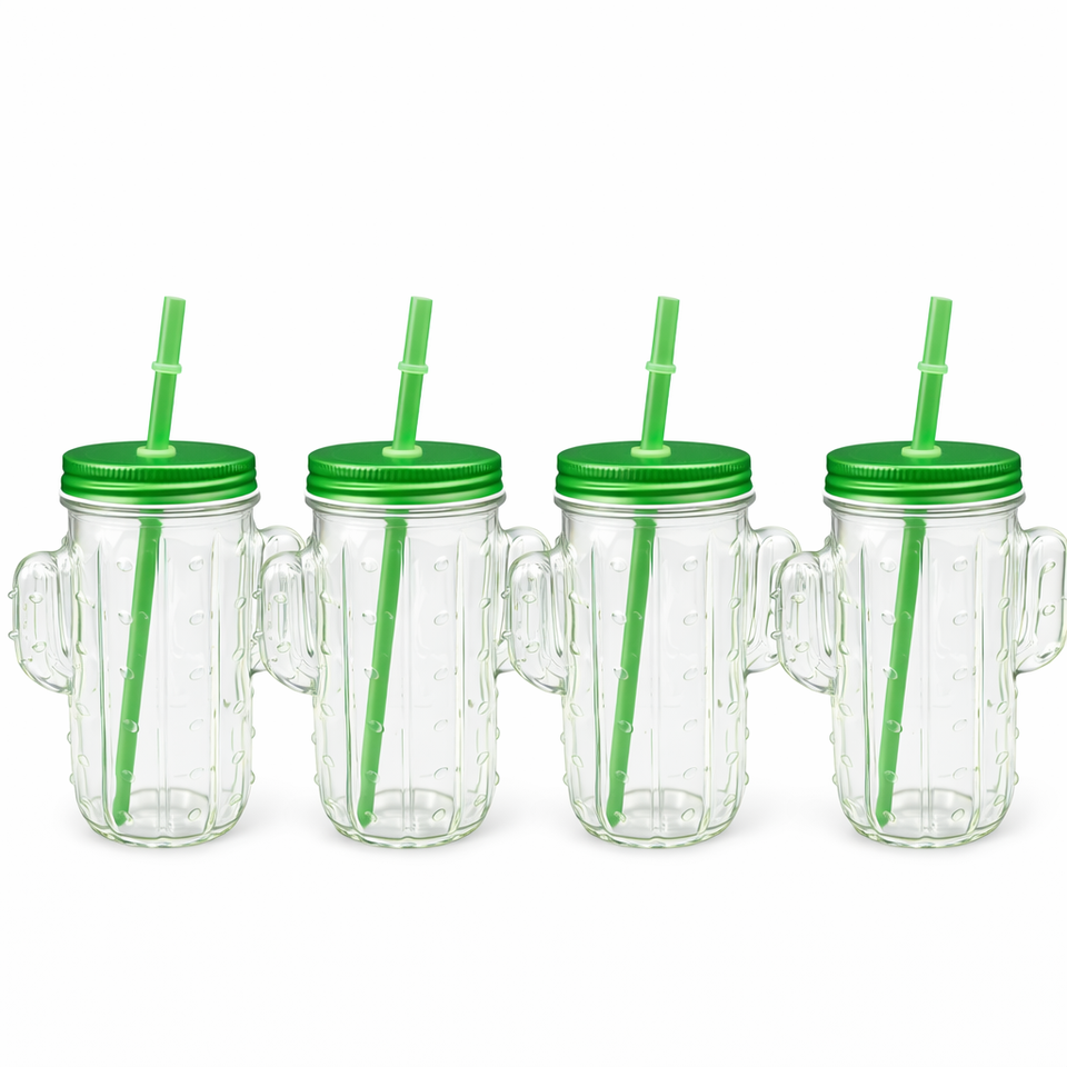 Gobelet en verre Cactus de 400 ml avec couvercle et paille, réutilisable, pour jus, café glacé, bubble tea, fête estivale, OEM ODM