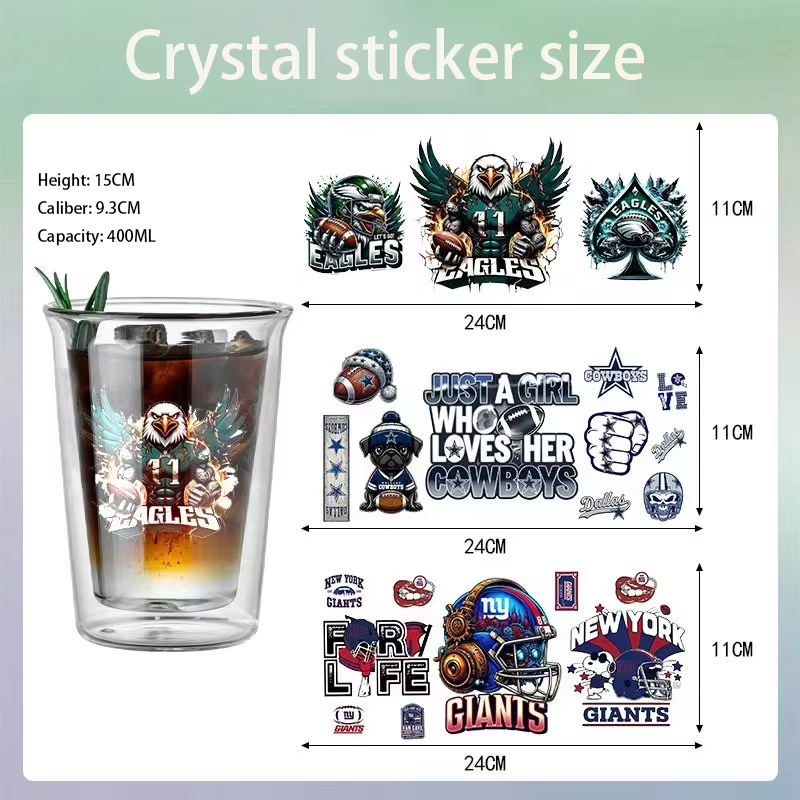 Gobelet à bière DIY sur le thème du rugby de 400 ml avec autocollants UV, verre borosilicate à double paroi, gobelet créatif pour les fans de sport, pour les bars sportifs et les fêtes