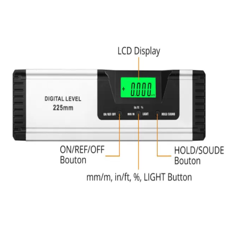 Règle de niveau numérique industrielle de 400mm avec grand écran LED lumineux et règle de mesure horizontale à arrêt automatique audio