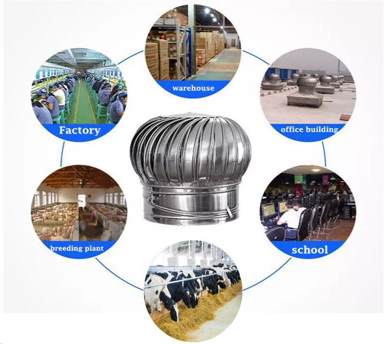 Extracteur de ventilation éolienne 400 mm en acier inoxydable 304 pour restaurant, sans alimentation électrique, à fixation sur toit