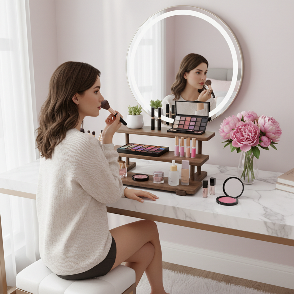 Étagère à épices beige de 40 cm - Organisateur de rangement multi-niveaux pour comptoir de cuisine