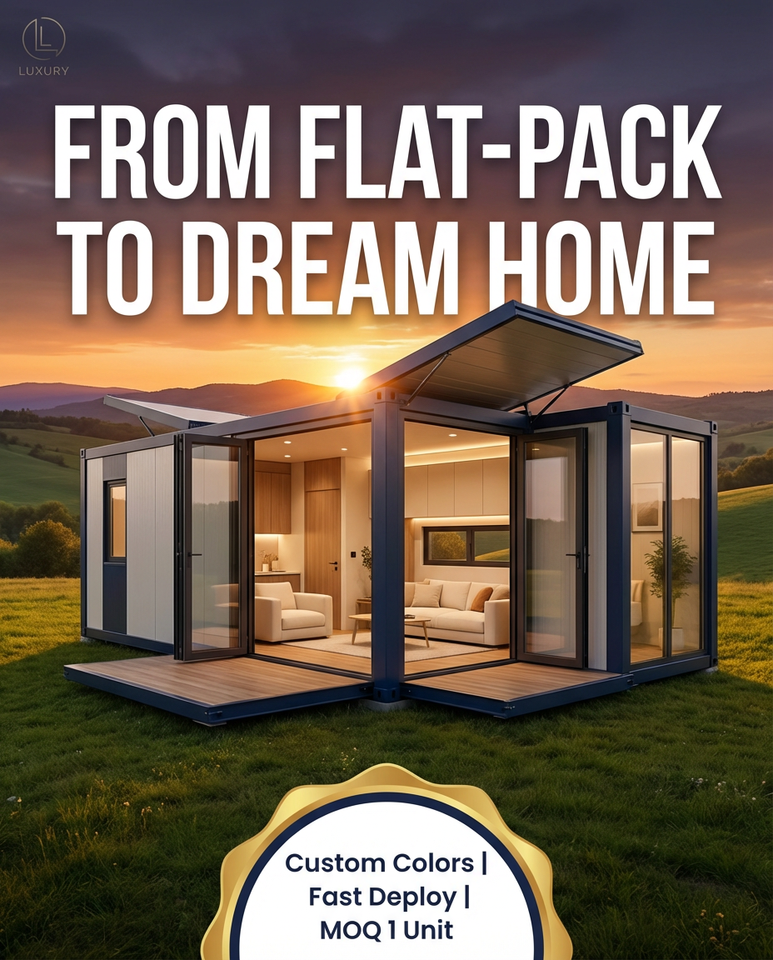 Maison conteneur pliable et extensible de 40 pieds, maison préfabriquée modulaire, panneau sandwich en acier, conception personnalisée, mini-villa, bureau, cabane