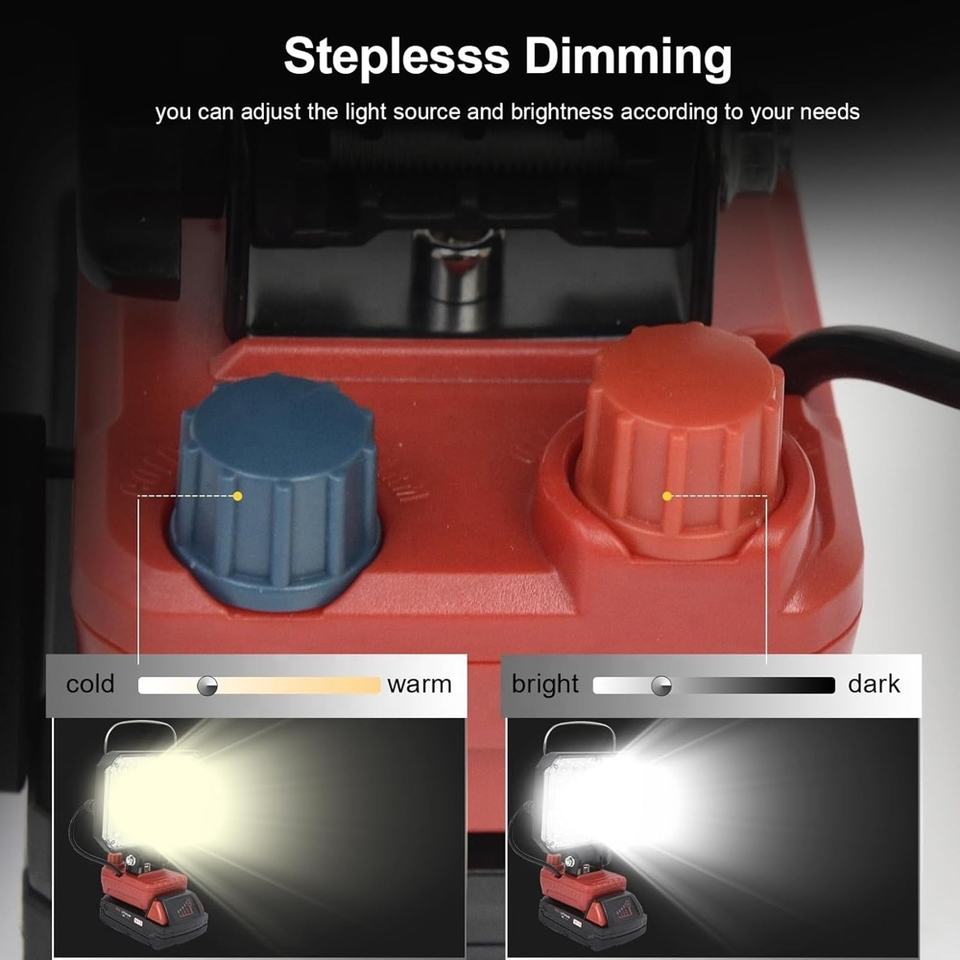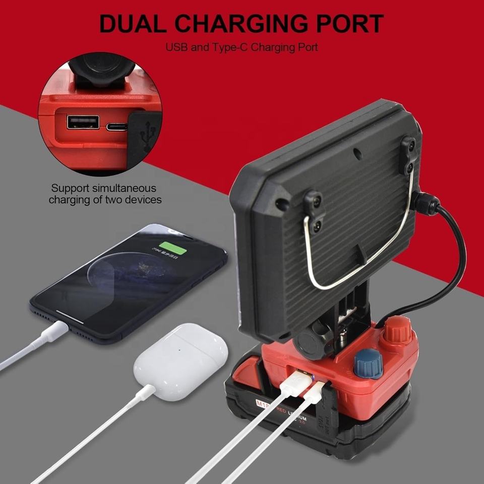 Lampe de travail LED portable 40W 4000LM 18V pour Milwaukee m18 avec port de charge USB et Type-C, lampe LED rechargeable pour atelier