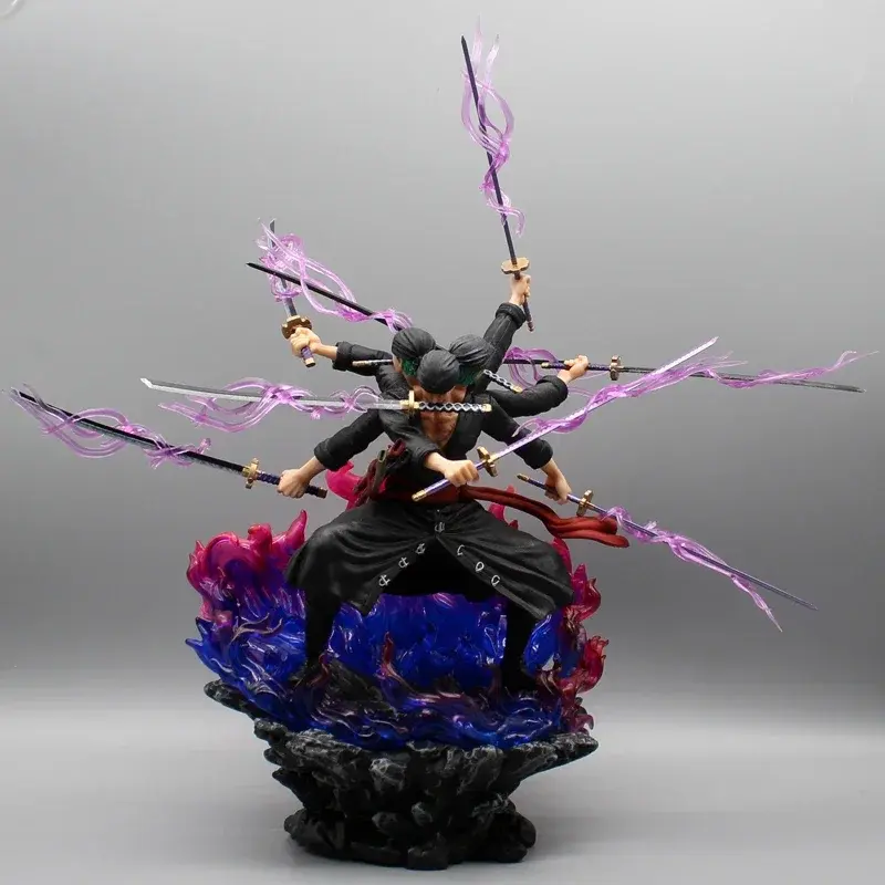 Figurine d'anime One Piece de 40 cm, Roronoa Zoro, trois têtes et six, figurines d'action du pays de Wano, collection de modèles en PVC, jouets, poupées, cadeaux