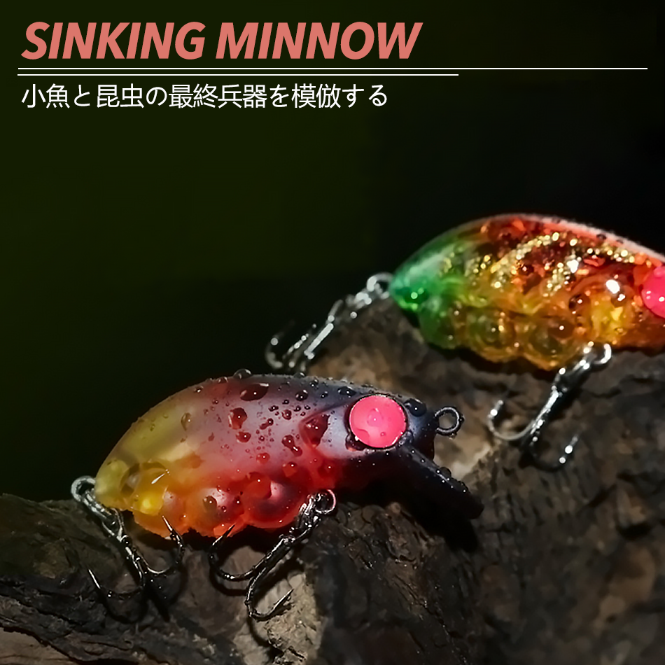 Leurre coulant pour insectes de 40 mm, 3,4 g - Conception à équilibre fixe, oscillation naturelle large pour la pêche à la truite, au bar et au poisson-chaud, action de chute lente