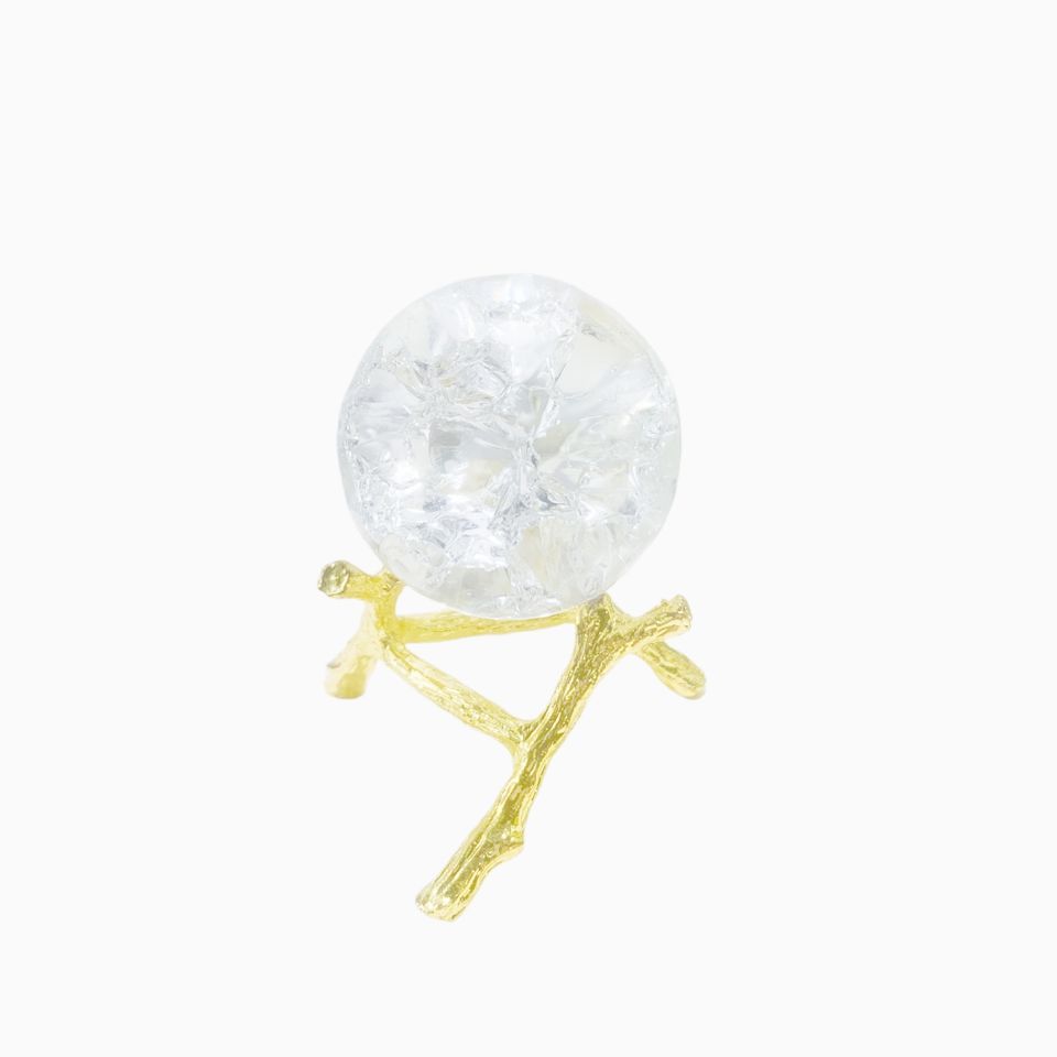 40mm Crystal Ice Cracked Balls with Metal Branches Base Paperweight K9 Glass Decorative Ball Decor for Home Table Room Office