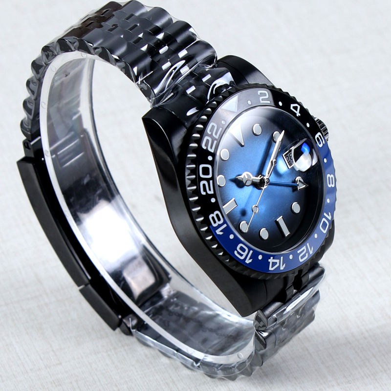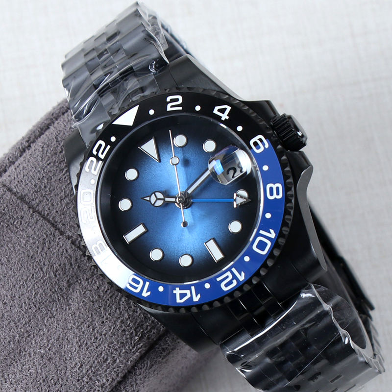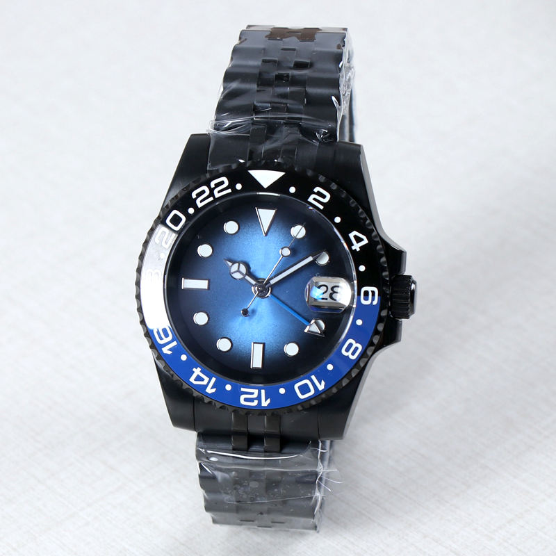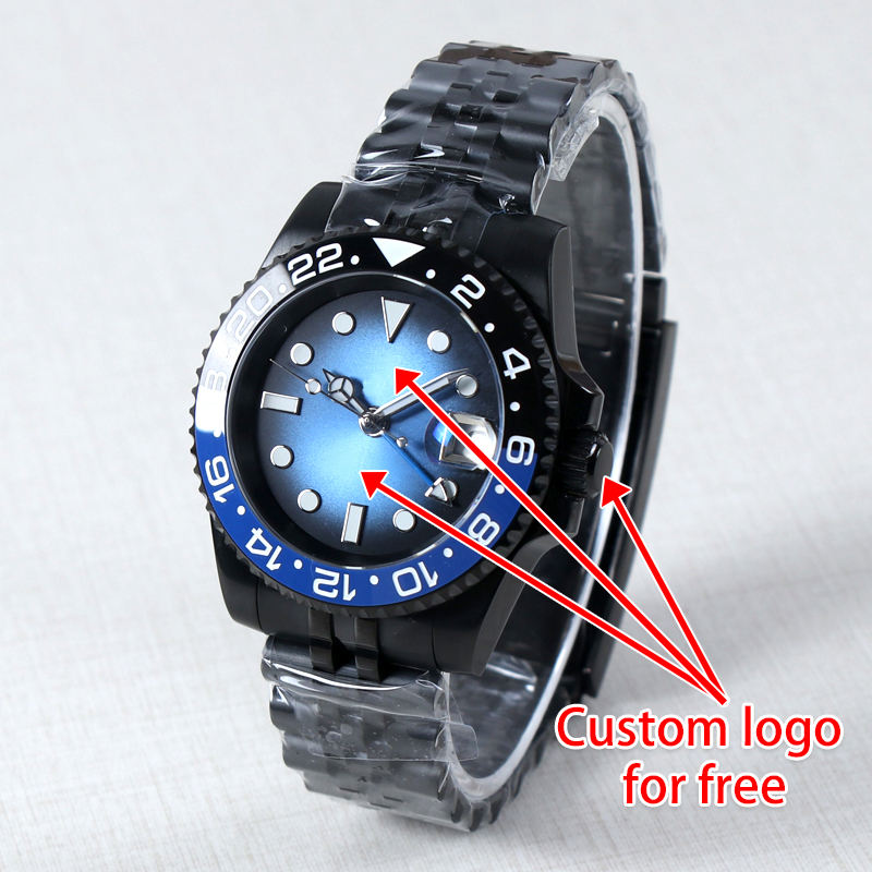 Montre automatique pour homme 40 mm avec mouvement NH34, logo personnalisé, verre saphir, étanche 10 bars, mécanique, noire