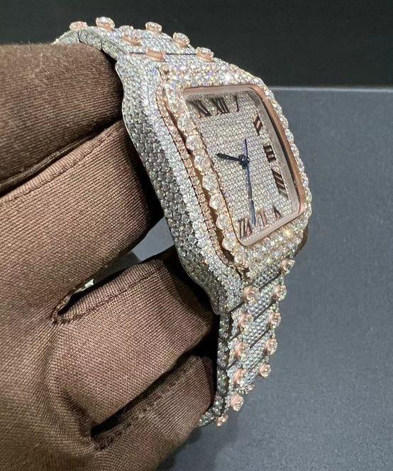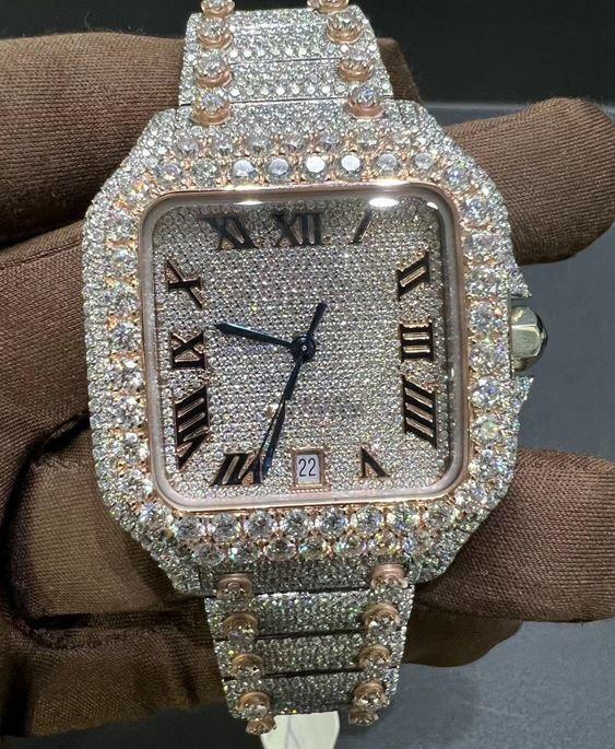 Montre à Quartz à Affichage Analogique en Acier Inoxydable Or de 40mm VVS1 Moissanite Diamant Entièrement Glacé Carré Bus Cadran en Verre Luxe Antique