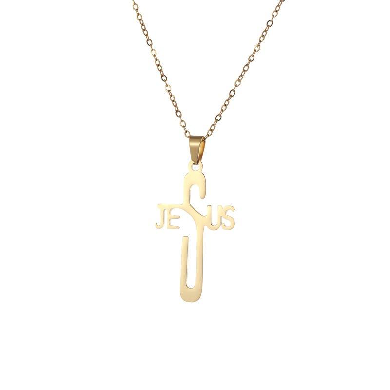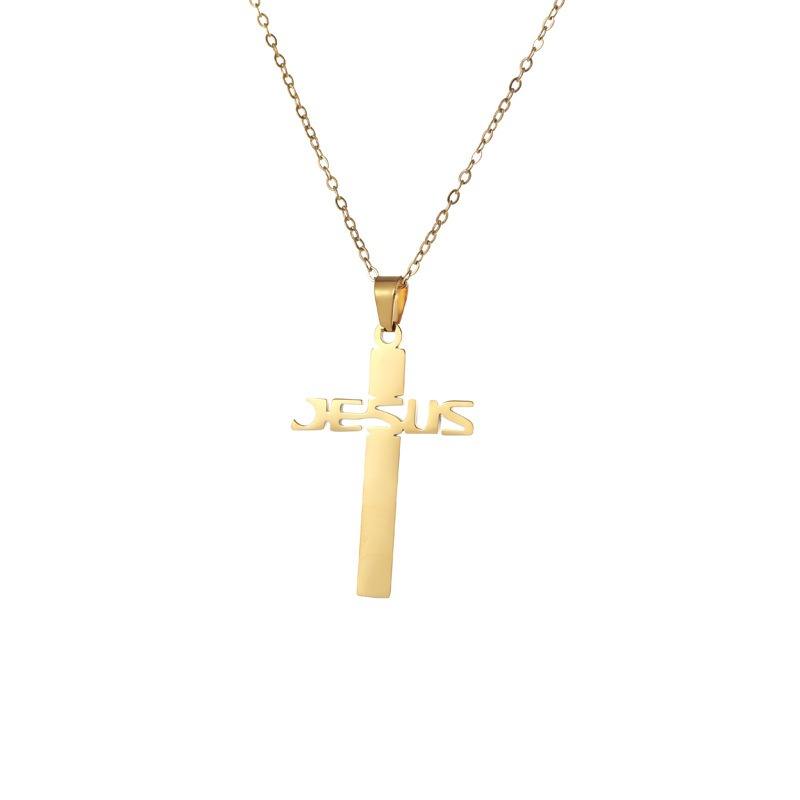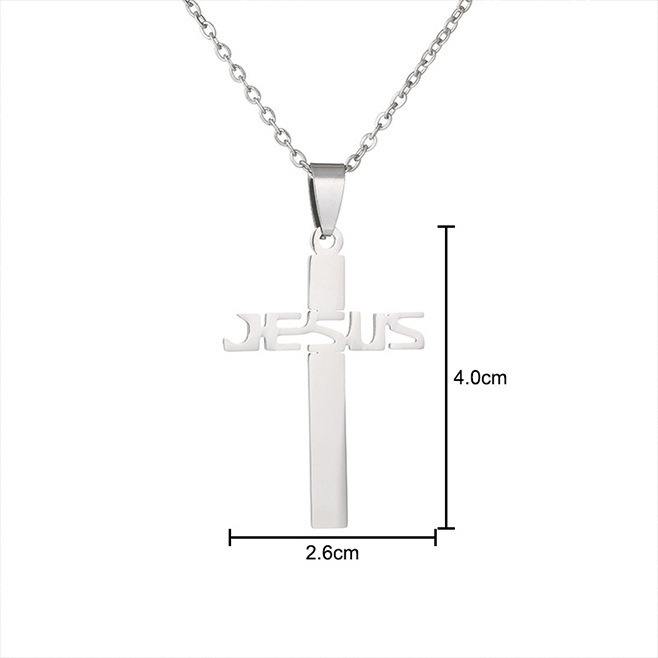 Collier pendentif croix 40 mm en acier inoxydable avec inscription Jésus, bijou de foi chrétienne, accessoire de mode hip-hop, durable et inaltérable