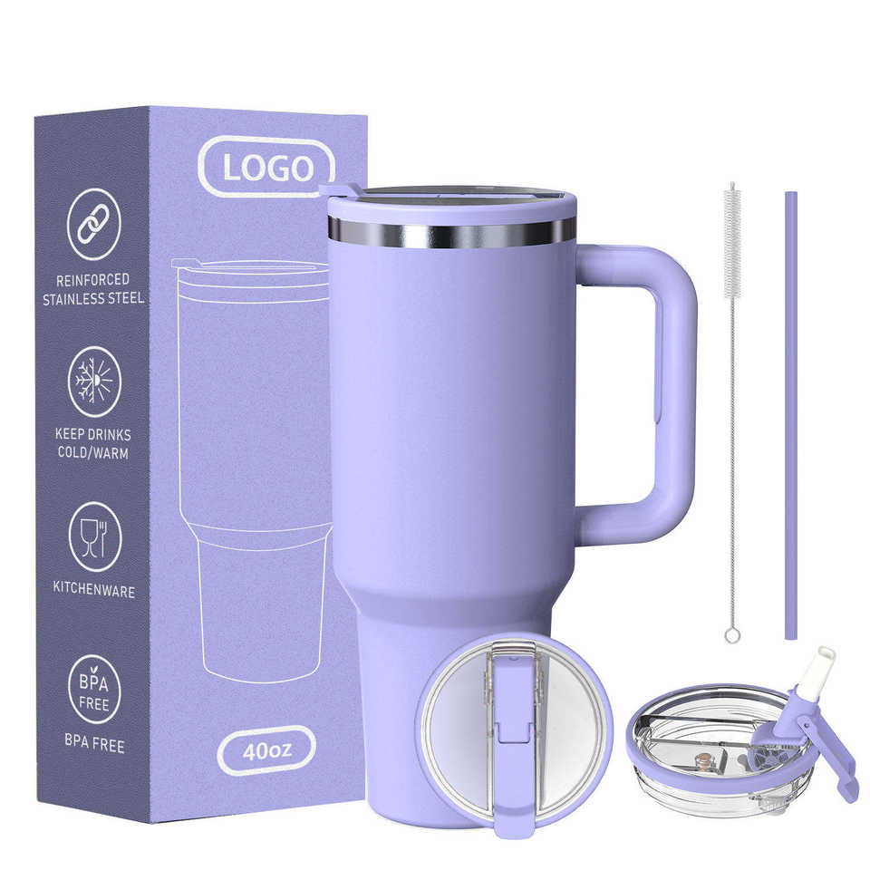 Mug de voyage isotherme 40oz en acier inoxydable à double paroi, avec logo personnalisé, paille, poignée, anti-fuite, sans BPA, maintien thermique 12-24h