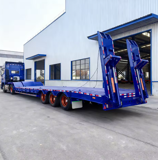 Châssis de conteneur en acier de 40 tonnes, 60 tonnes, 100 tonnes, chargeur de conteneurs, camion à plateau bas, remorque à plateau bas, semi-remorque à plateforme basse