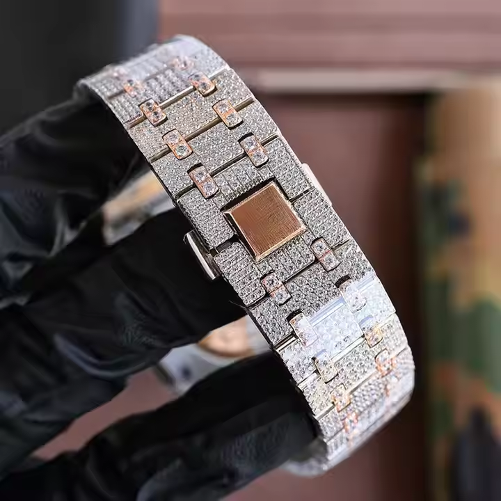 Montre de luxe en diamant Moissanite de style Hip Hop de 41mm, montre à mouvement automatique en acier inoxydable à coupe ronde pour hommes