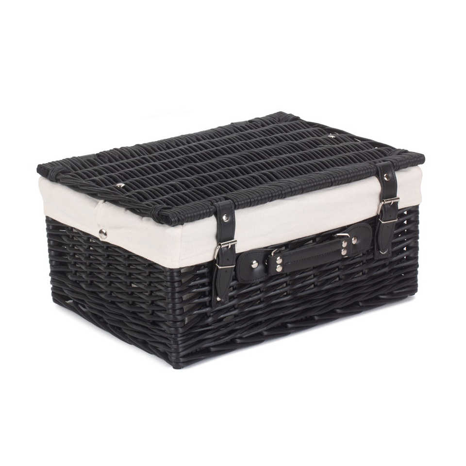 41 cm Black Ash Picnic Basket with Cotton Lining Large Empty Picknickkorb