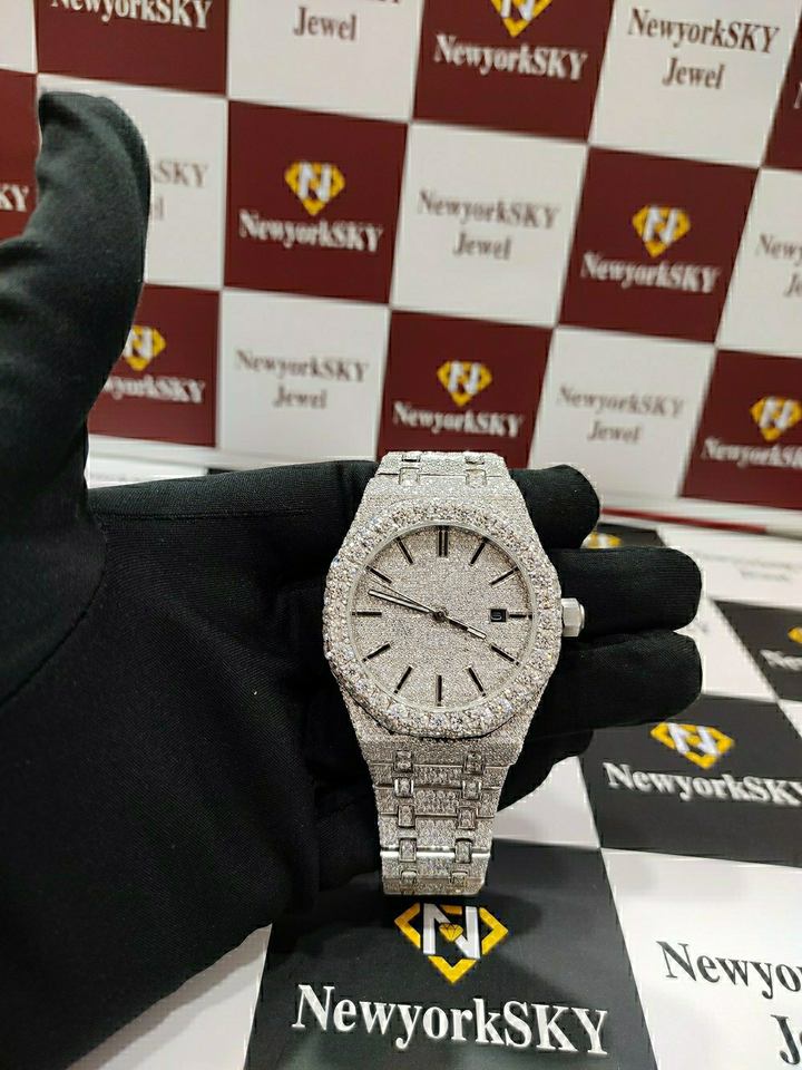 41MM Nouvelle Marque Iced Out Montre En Acier Inoxydable Étincelant À La Main Réglage Buste Vers Le Bas VVS Moissanite Montres pour Bijoux De Mode