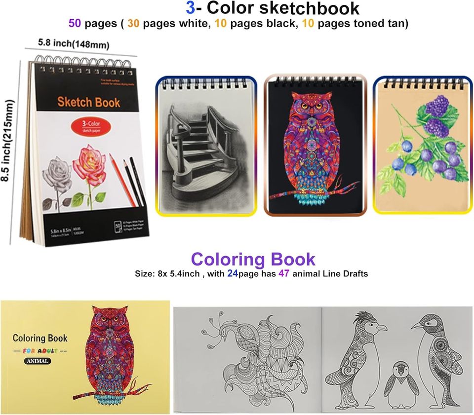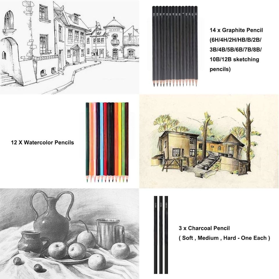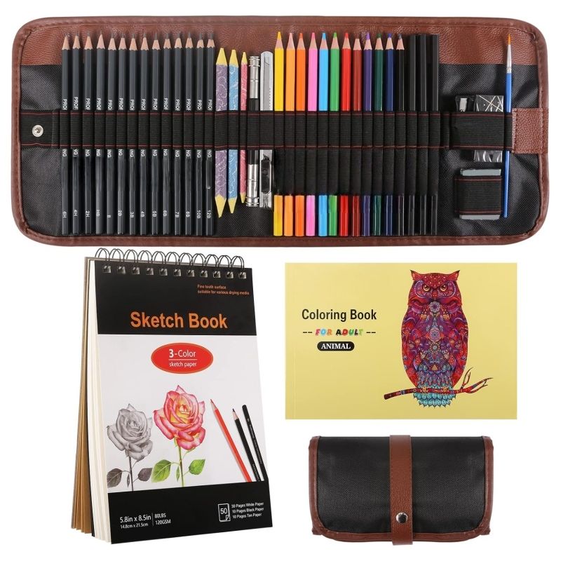 41 pièces ensemble de crayons à croquis ensemble d'art de dessin professionnel ensemble complet de couleurs de dessin avec des crayons d'aquarelle au charbon de Graphite