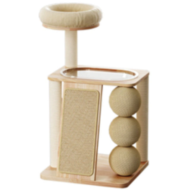 Arbre à chat en bois massif de couleur naturelle de 42,13 pouces