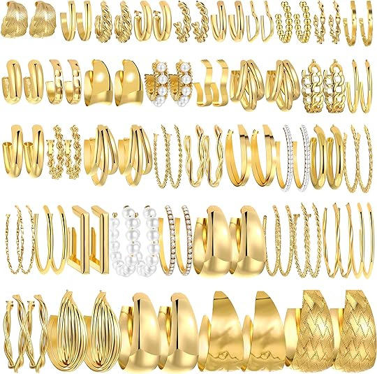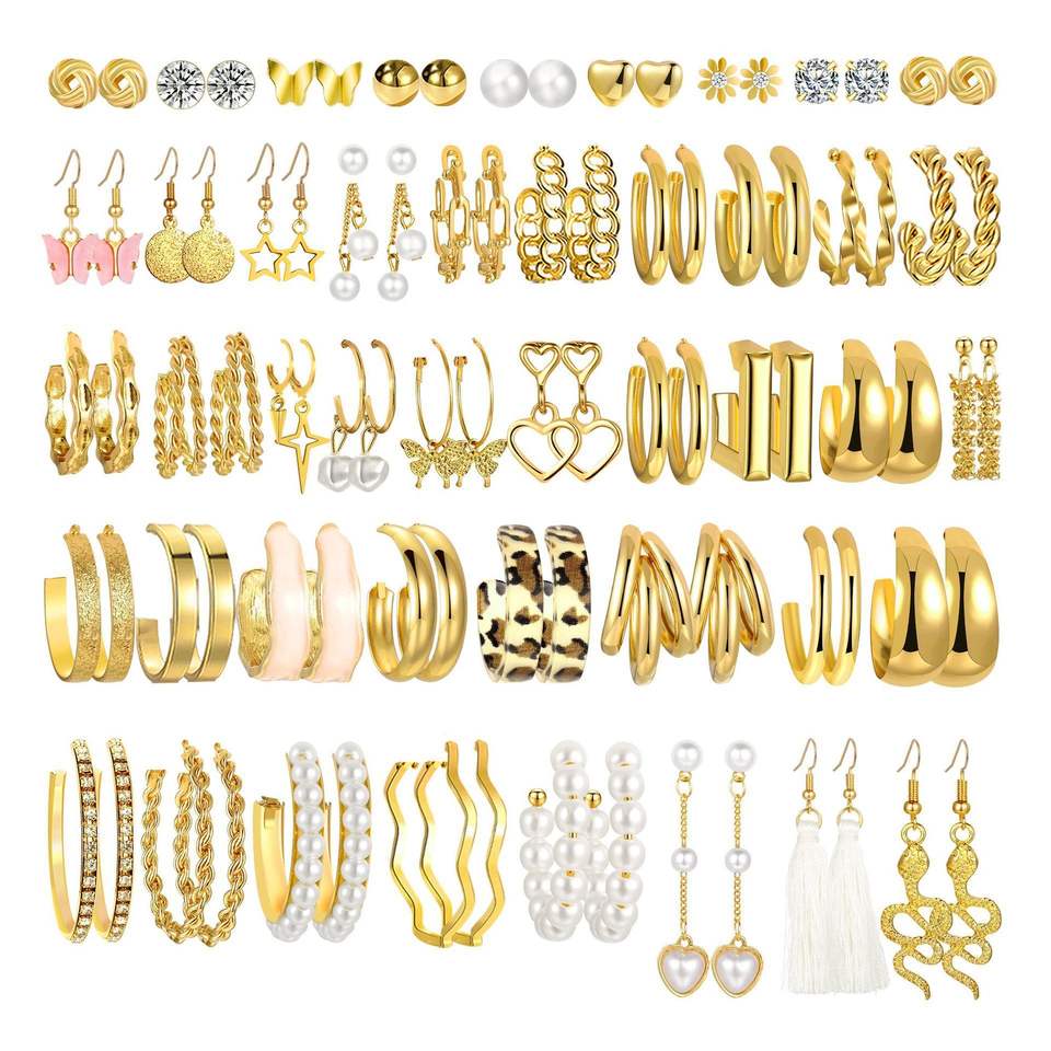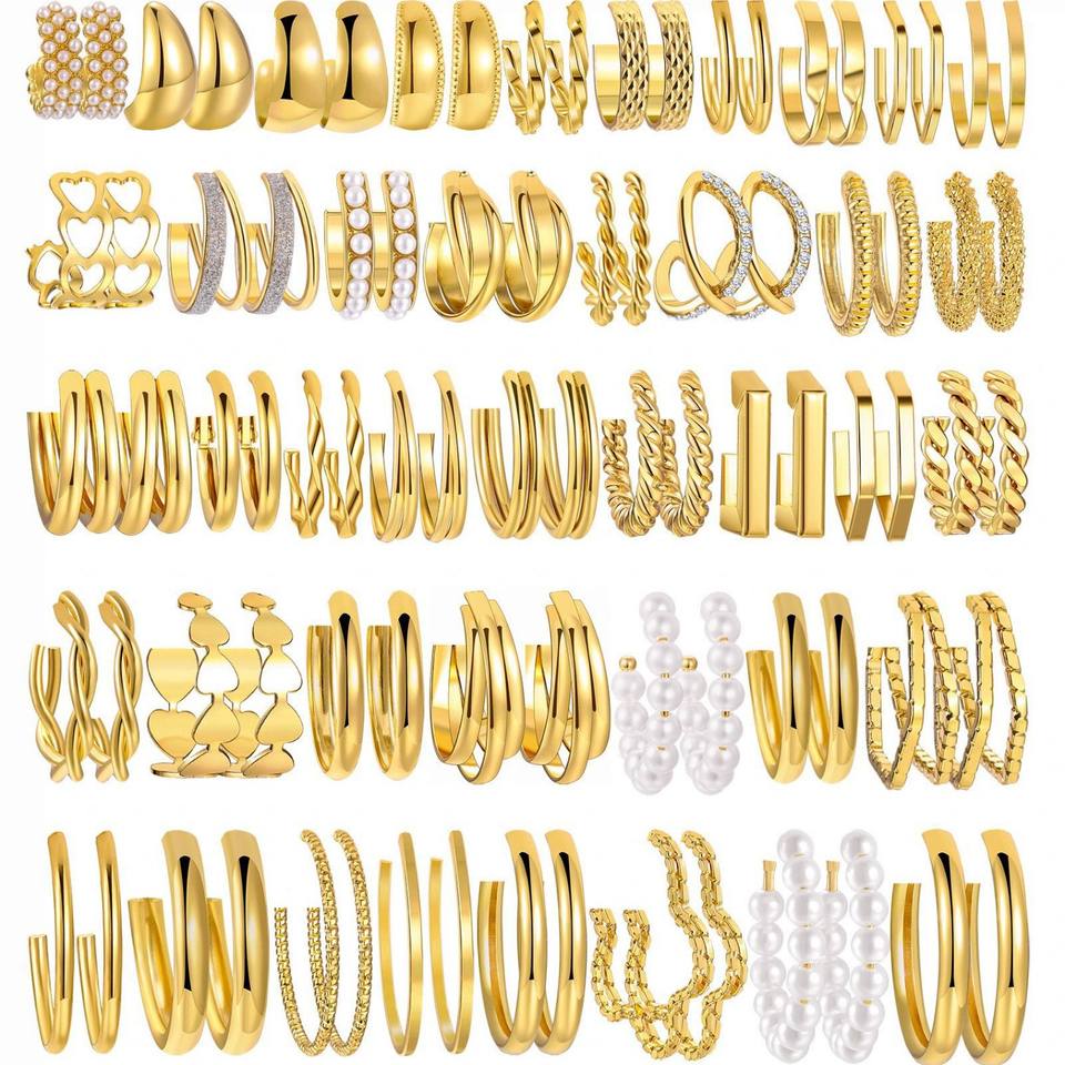 42 Pairs Gold Hoop Earrings Set Fashion Alloy Stainless Steel Stud Big Gold Hoop Hypoallergenic Earrings Jewelry Women