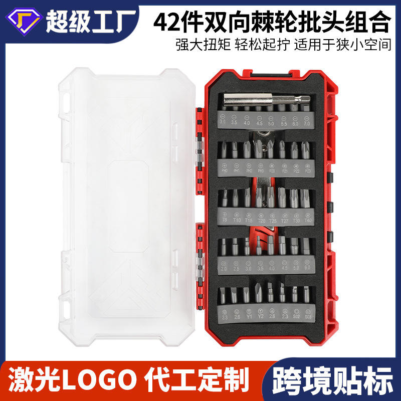 Spécifications et modèles: Ensemble de 42 pièces : Clé à cliquet, embouts et colle - TA032