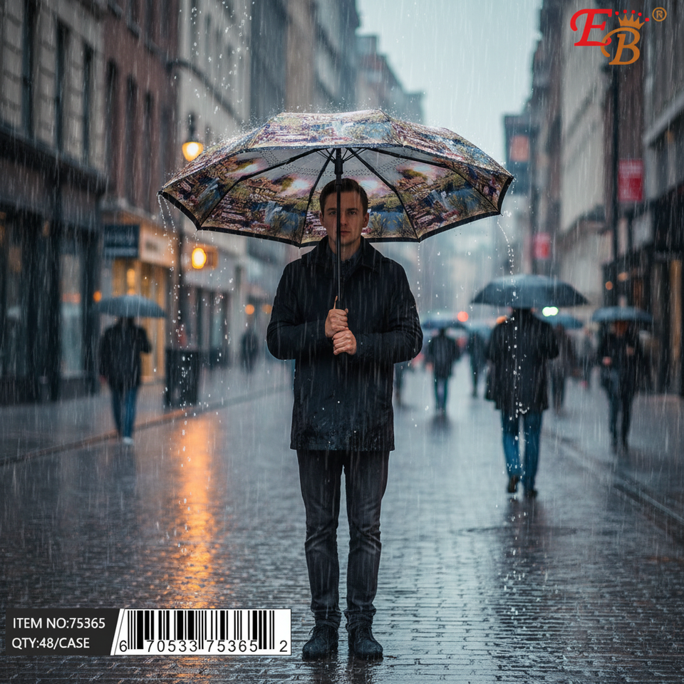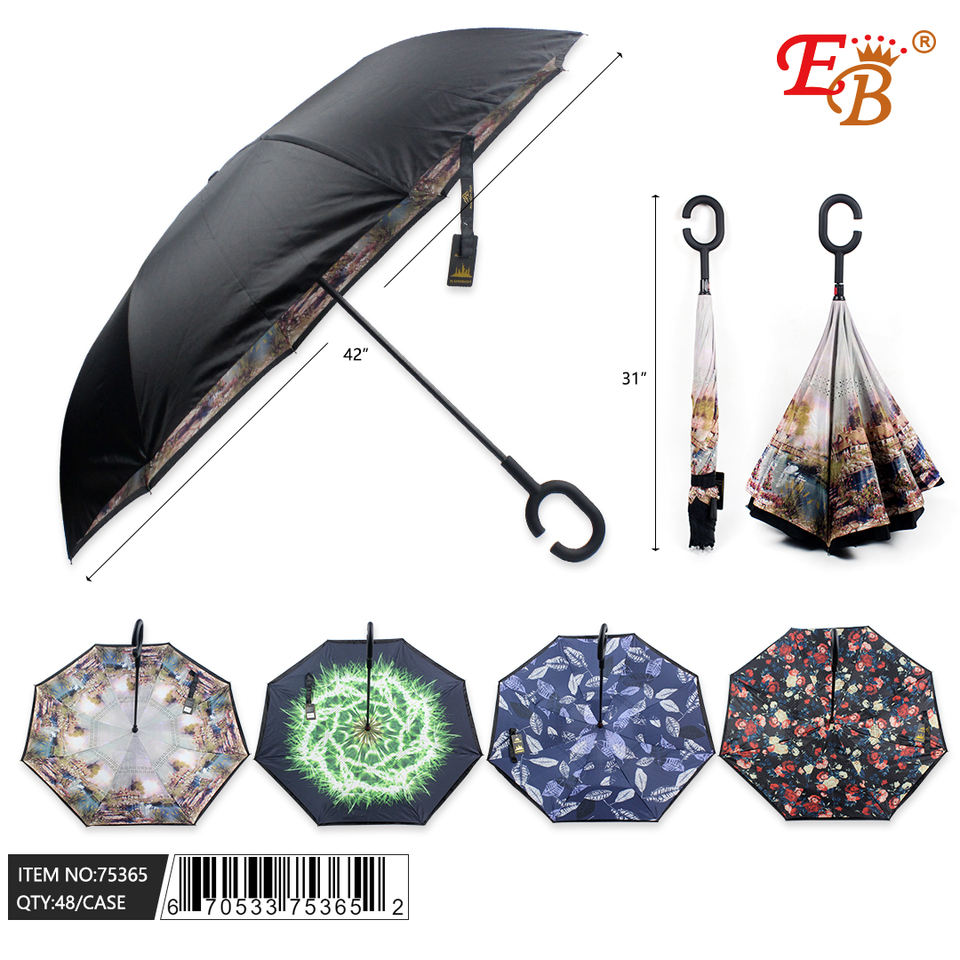 Parapluie de 42 pouces à ouverture automatique Rose 48PC/CS 190T Silk Huit-Rib Contrôle semi-automatique Parapluie droit à trois plis
