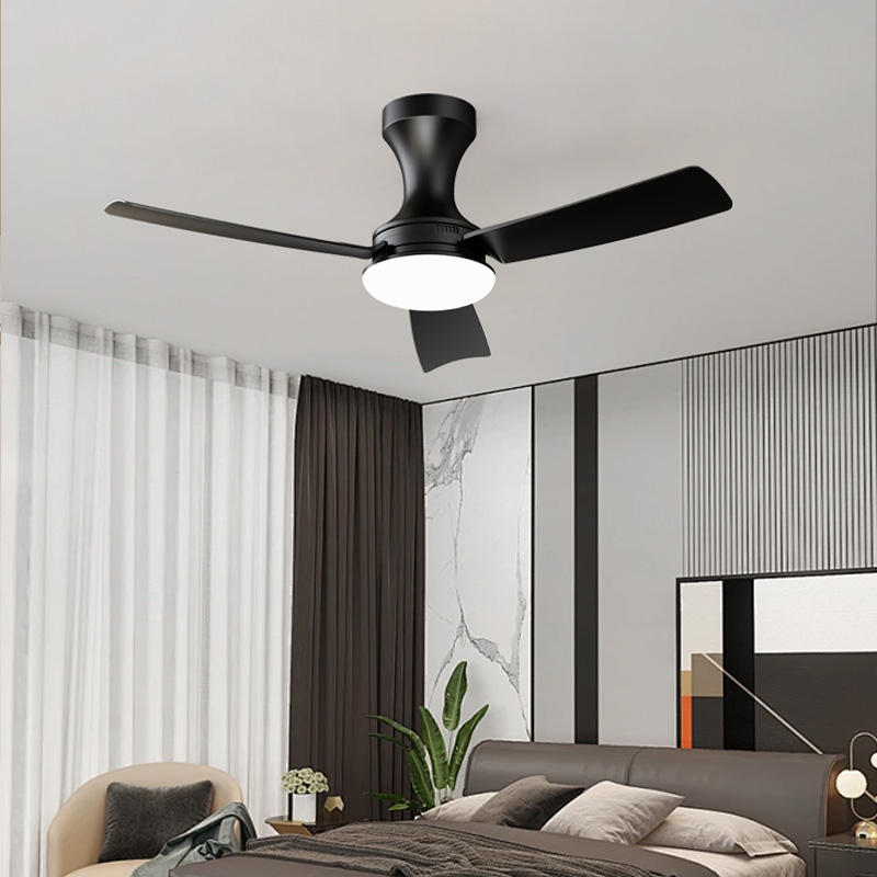 Ventilateur de plafond intelligent minimaliste de 42 pouces, commande par application/télécommande, design noir à 3 pales, lumière LED à intensité variable, moteur DC silencieux <30 dB, 6 vitesses