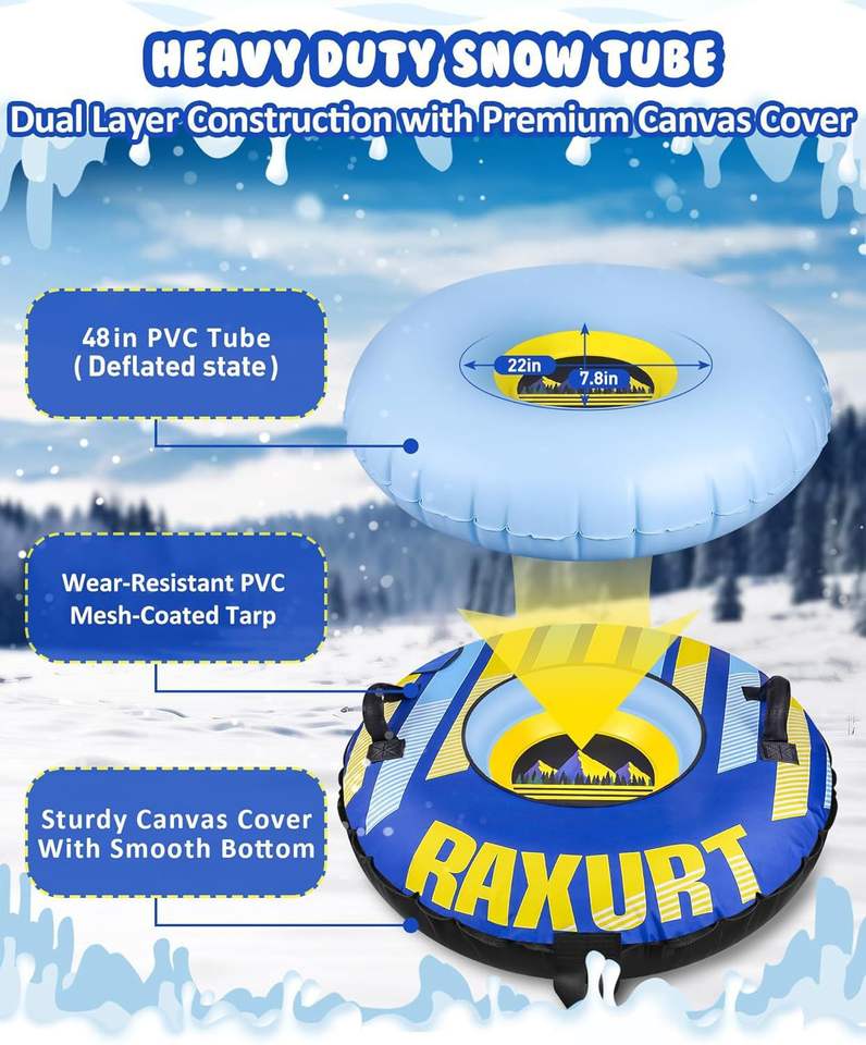 Tube à neige gonflable 420D en nylon pour sports d'hiver, luge robuste pour enfants et adultes, matériau durable résistant au froid