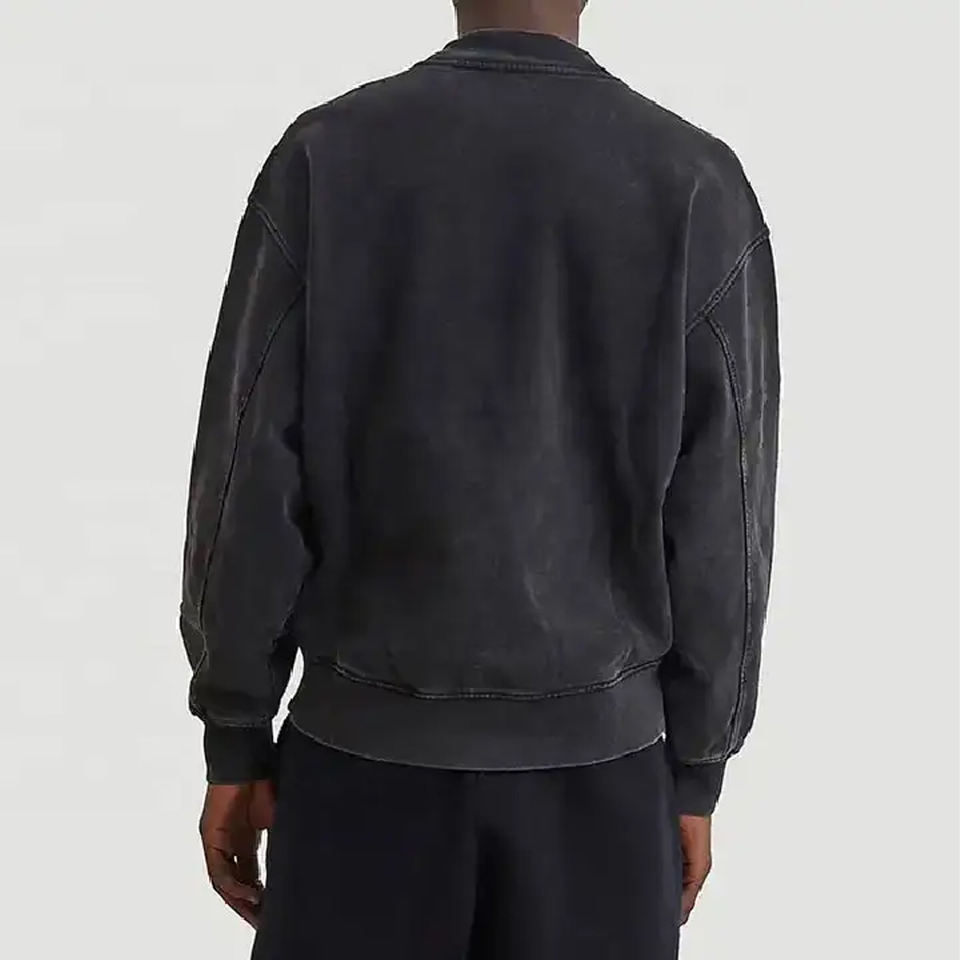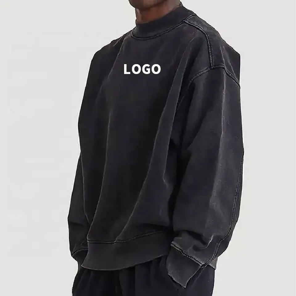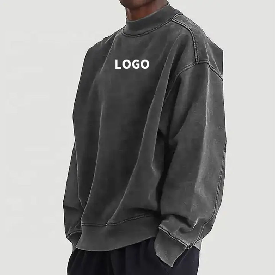 420G Heavyweight 100% Cotton Long Sleeve Retro Sweatshirt with Collar Acid Washed Pullover with Custom Logo Digital Printing