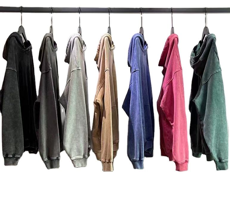 420gsm Heavy Weight 100% Cotton Long Sleeve Oversized Vintage Batik Hoodie Washed Loose Style with Dot Pattern for Autumn Man