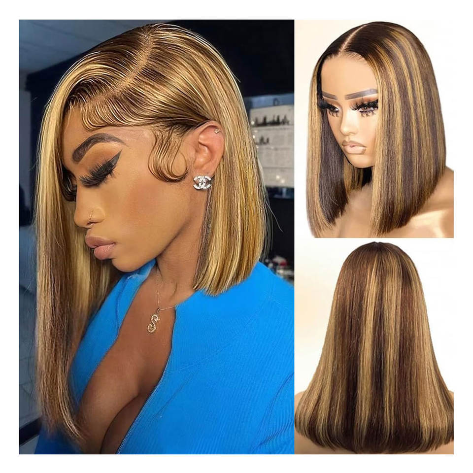 427 Highlight Ombre Bob Perruque Cheveux Humains 16 Pouces Droite HD Lace Front Perruque Pré Cueillie 13x4 Frontal Court Bob Perruques 180 Densité