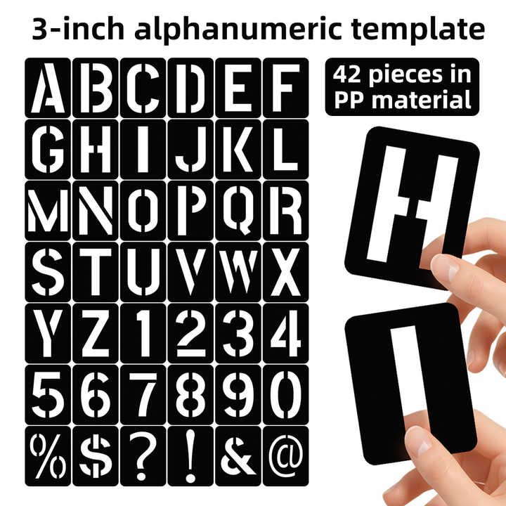 42 pochoirs en plastique à motifs de chiffres noirs, réutilisables, creux, en PP, pour la peinture murale DIY