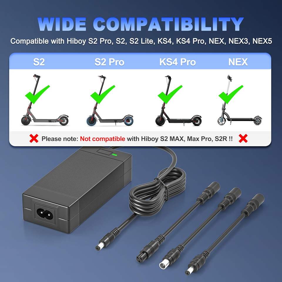 Chargeur de scooter électrique 42V 2A compatible avec le scooter Hiboy, alimentation électrique