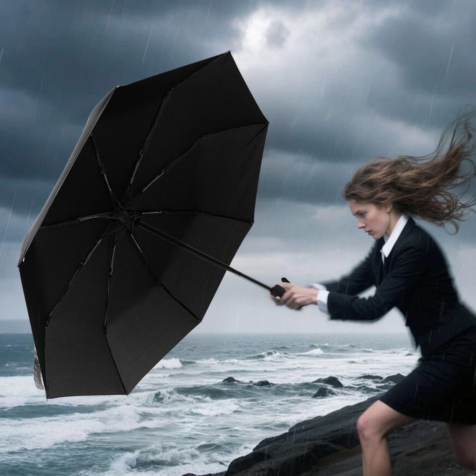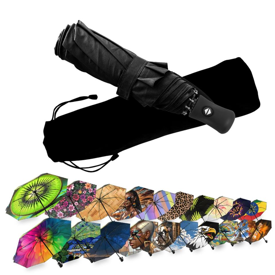Parapluie de voyage compact moderne à trois plis entièrement automatique de 42 pouces, coupe-vent, protection UV, en pongé 190T, cadeau d'affaires