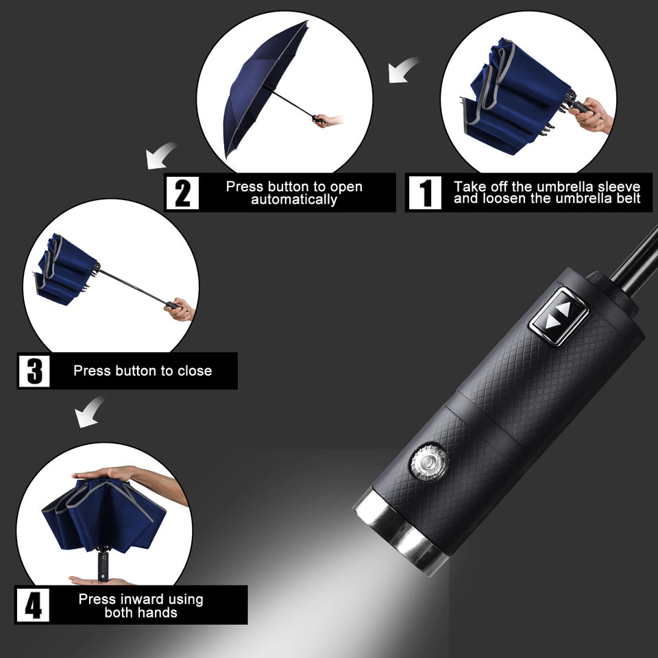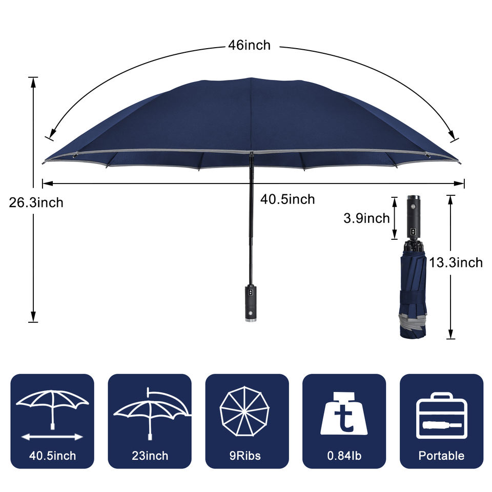 Nom:Parapluie réversible automatique rétractable réfléchissant de sécurité avec poignée à LED