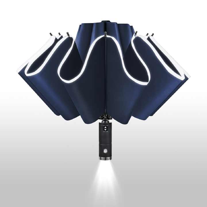Parapluie réversible automatique rétractable réfléchissant de sécurité avec poignée à LED