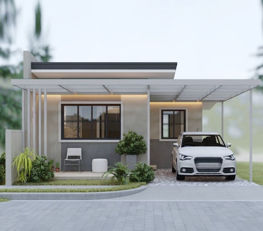 Petite maison bungalow préfabriquée de 42 m2 avec abri d'auto couvert en acier Appartement d'une chambre à louer bon marché