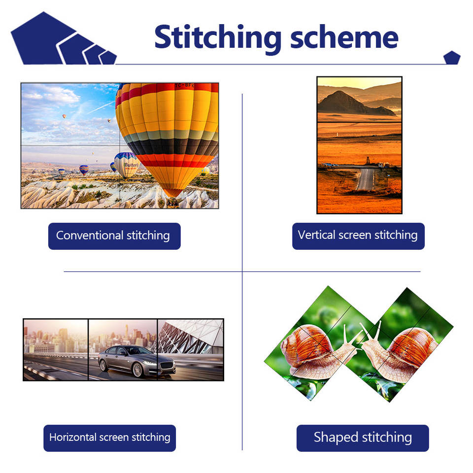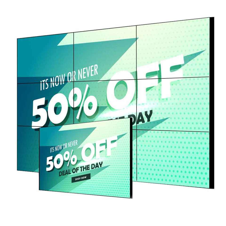 43 46 49 55 pouces 3.5mm cadre étroit 4K LCD mur vidéo avec 500 Nit luminosité gratuit CMS, FHD, IPS, réduction de l'écart et contrôles faciles