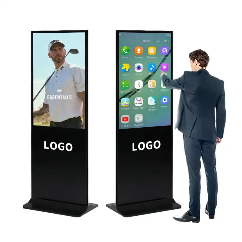 Écran tactile portable Full HD de 43, 50 et 55 pouces, support de sol, écran LCD, signalisation numérique pour le marketing, centre commercial, machine publicitaire