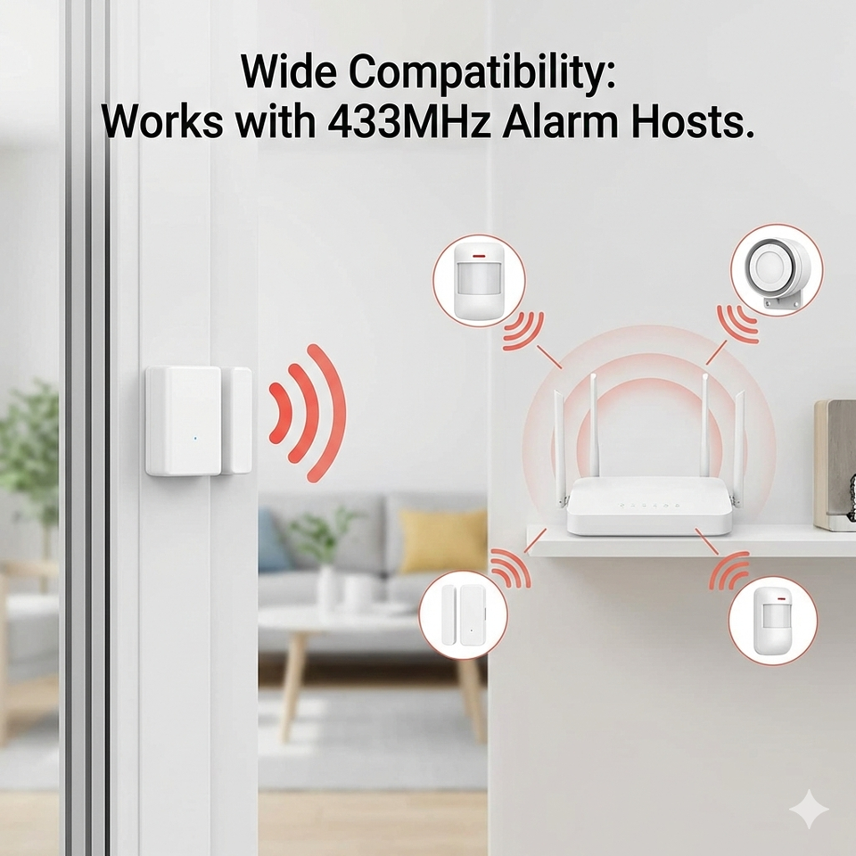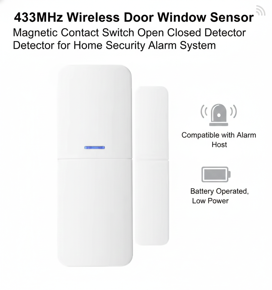 Capteur de porte et de fenêtre sans fil 433 MHz, interrupteur à contact magnétique, détecteur d'ouverture et de fermeture pour système d'alarme de sécurité domestique