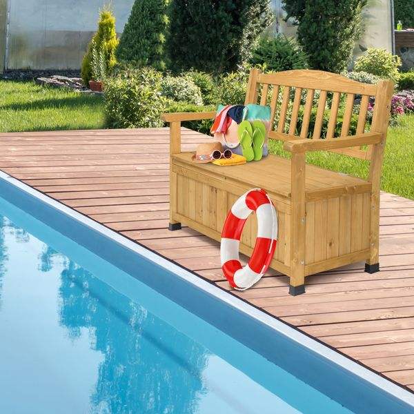 44-Inch Cedar Patio Bench with Backrest & Armrest Bright Yellow for Yard Storage