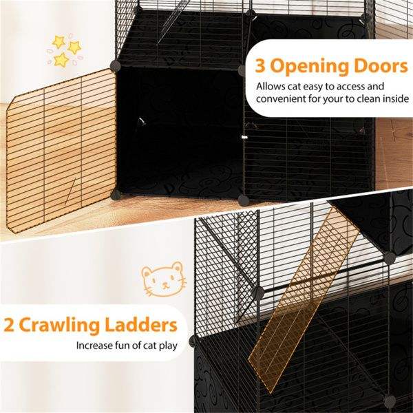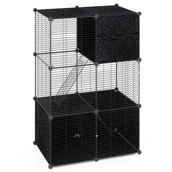 Arbre à chat d'intérieur multi-niveaux de 44 pouces avec poteaux à gratter en sisal, hamac et balles suspendues, noir