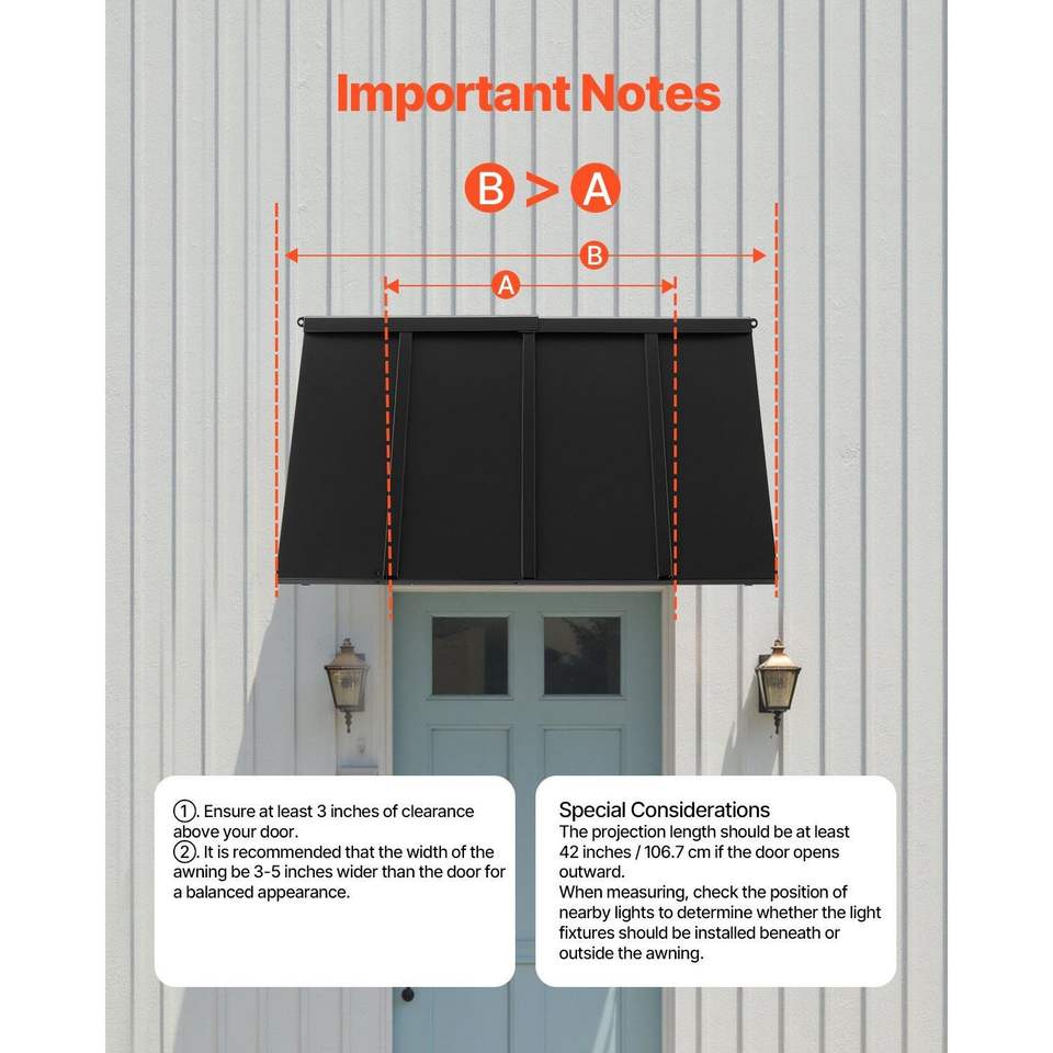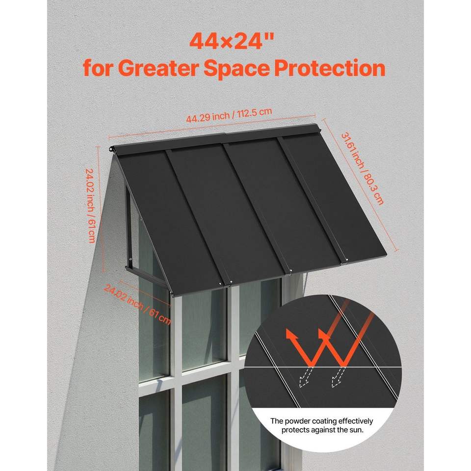 Auvent fixe en métal de 44 x 24 pouces avec structure triangulaire stable en acier, auvent extérieur pour porte, protection contre la pluie et la neige pour fenêtre