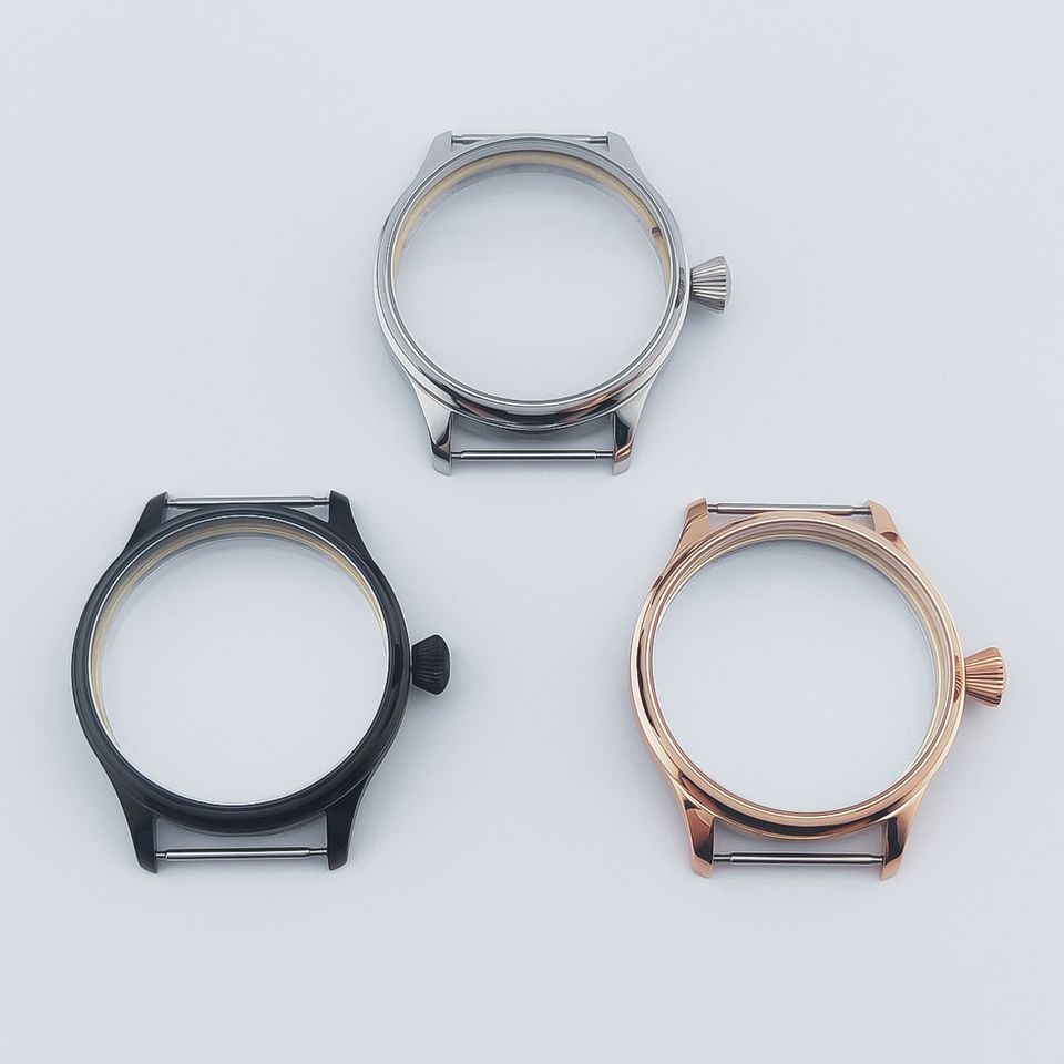 Boîtier de montre en acier inoxydable noir bronzé/PVD, verre minéral de 44 mm, transparent, étanche, compatible avec les modèles ETA 6497 6498 3600 3602